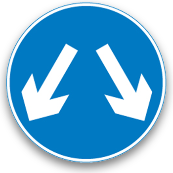 Blue circles tell you what you must do and this sign gives a clear instruction to turn left ahead. You should be looking out for signs at all times and know what they mean.